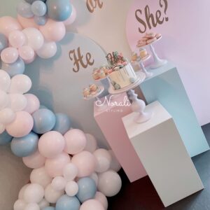 BabySweetsDecor biedt een mooie achtergrond waar je de onthulling voor kunt doen.